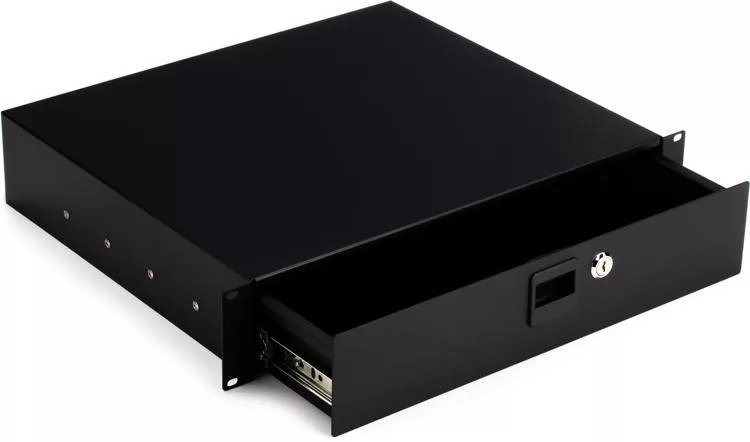 Make practical use of empty space between rack-mounted components with our RDL2000 2U Locking Rack Drawer that provides convenient storage for studio and stage accessories such as cables, connectors, and tools. Smooth, sturdy drawer slides ensure reliable daily operation while all-metal construction and locks keep contents secure and prevent tampering. |
