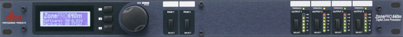 The ZonePRO 640m offers fixed I/O, pre-configured architecture, configurable insert processing and optional duplication of audio channels to another ZonePRO device via a link bus.