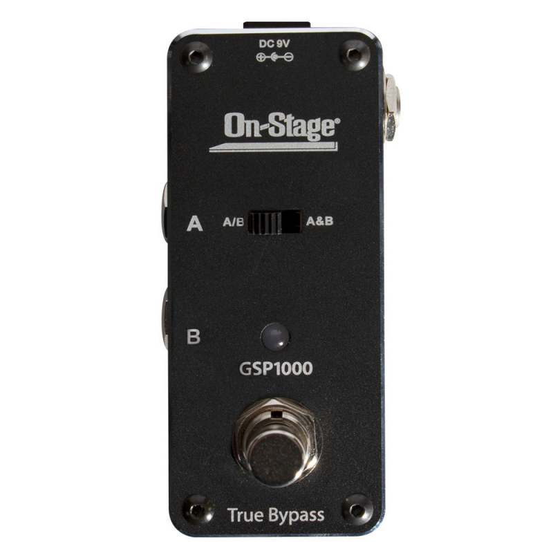 Our GSP1000 ABY Switcher gives musicians a choice of two-input/one-output or one-input/two-output configurations. This pedal excels at several applications including running one instrument to two amps in stereo, switching between two amps, plugging two instruments into one effect chain, or bypassing effects. Its true-bypass circuitry completely removes the pedal from the signal path when the pedal is turned off. The heavy-duty housing with nonslip rubber base ensures reliable performance. |
