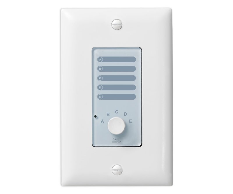 The Soundweb Contrio AC-V and AC-5S are simple analog wall controllers designed for use with BSS Audio Soundweb London devices. Both the AC-V and AC-5S are available in black or white, and in single-gang US Decora or single-gang EU form factor. The AC-V and AC-5S are designed to connect to General Purpose Inputs (GPI) (also known as “Control Inputs”) found on Soundweb London devices. Most Soundweb London devices contain 12 GPI. The Soundweb London BLU-GPX contains 36 GPI. The AC-V contains a single 47k Ohm logarithmic potentiometer which is useful for volume control. The AC-V requires one GPI. Therefore, up to 12 AC-V controllers can connect to a single Soundweb London device, and up to 36 AC-V controllers can connect to a single BLU-GPX. The AC-5S contains a single five-position resistor ladder which is useful for source selection or preset recall. The AC-5S requires one GPI. Therefore, up to 12 AC-5S controllers can connect to a single Soundweb London device, and up to 36 AC-5S controllers can connect to a single BLU-GPX. The AC-V and AC-5S are configured using HiQnet London Architect or HiQnet Audio Architect via simple drag and drop operations. While almost any parameter can be mapped to the physical controls, the AC-V is most commonly used for volume control, and the AC-5S is most commonly used for source selection or preset recall.