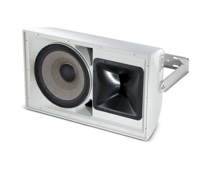 The AW595-LS is a high power, lightweight, 2-way, full-range loudspeaker system comprised of the JBL Differential Drive dual voice coil and dual magnetic gap 2265H 380 mm (15 in) low-frequency driver and 2432H high-frequency 38 mm (1.5 in) exit, 75 mm (3 in) voice-coil compression driver. The large format Progressive Transition wave-guide provides excellent 90° x 50° coverage. The waveguide is rotatable so the loudspeaker system can used in either the vertical or horizontal orientation. The system is equipped with a 400 W 70/100V transformer.