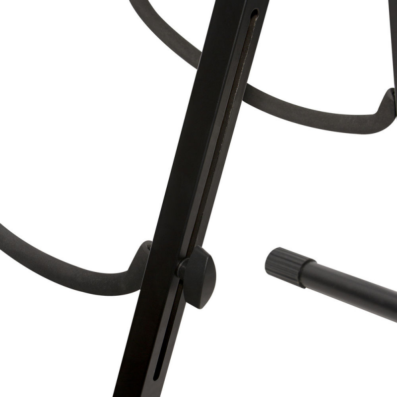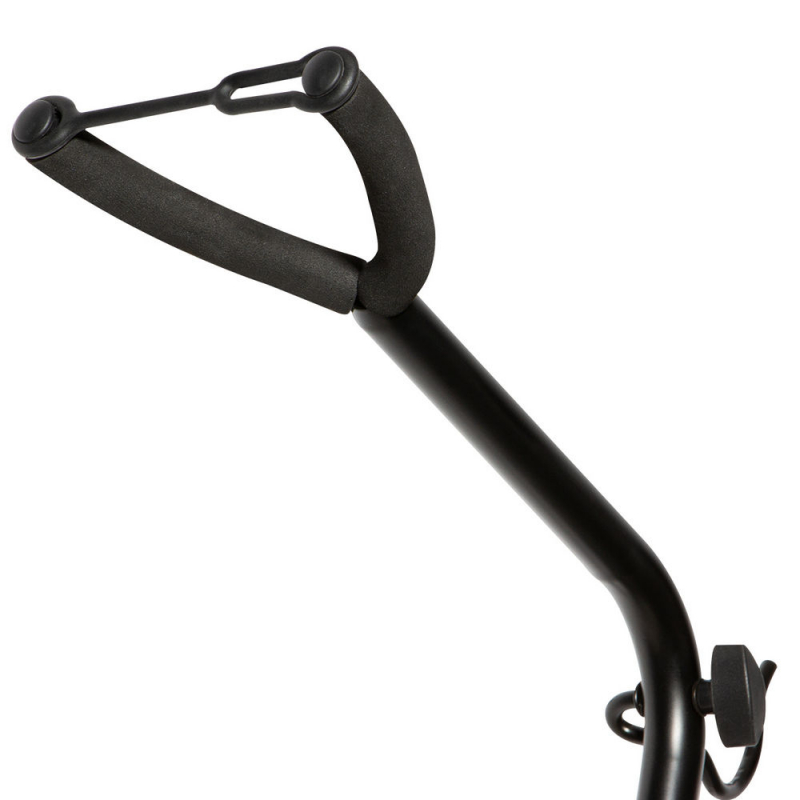 With its height-adjustable lower yoke, our CS7201 Cello/Bass Stand delivers secure storage for, and easy access to, a variety of large string instruments including cellos and double basses. Its wide, splayed tilt-back base provides weight balance that prevents tipping or falling. Rubber padding at all contact points increases grip while protecting the instrument's finish and nonslip feet inhibit unwanted movement of the base. For added convenience, a built-in hook affords handy storage for bows. |