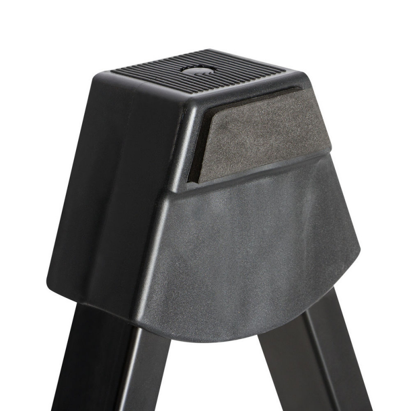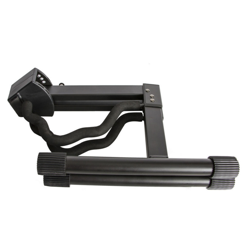 Get A-frame sturdiness alongside flat-folding convenience with our GS7364 Collapsible A-Frame Guitar Stand. The yoke is stepped to form two sections that can securely hold the depth of an electric, acoustic, or bass guitar and the yoke spread adjusts to properly position the guitar body against the backrest. The tilt-back stance keeps the guitar from tipping forward or falling. A wide, splayed base and nonslip feet provide stability and balance for dependable instrument support. Padding on the yoke and backrest protects the guitar's finish. Conveniently, there are no parts to keep track of due to its one-piece construction. For efficient storage and transportation, the stand folds into a flat, compact configuration. |