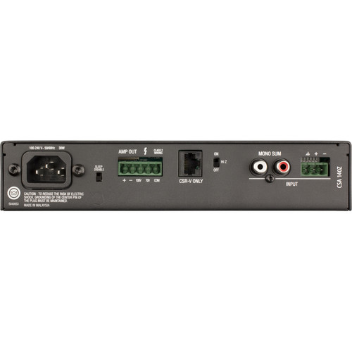 The JBL CSA 140Z Audio Amplifier (1x 40W) provides a compact and powerful amplification solution for installed applications. The unit utilizes a universal switch-mode power supply and Crown's DriveCore technology to deliver reliable and efficient sound amplification.
