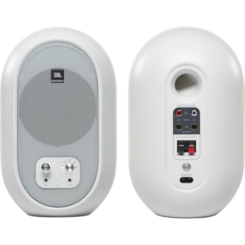 JBL 104-BT compact reference monitors with Bluetooth, the newest models in the 1 Series line, draw from seven decades of JBL Professional engineering to deliver the truest, most accurate sound in their class. They’re perfect for recording musicians, producers, podcasters and vloggers, as well as professional audio engineers seeking an accurate portable reference with Bluetooth streaming. JBL 104-BT Reference Monitors combine a powerful coaxial 4.5-inch (118 mm) low-frequency driver and .75-inch (19 mm) soft-dome tweeter, potent integrated 60-watt amplification and an innovative acoustic design to reproduce honest sound with exceptional imaging and crisp detail. Bluetooth streaming lets you check mixes over Bluetooth to make sure they sound great in every listening scenario. Both the black 104-BT and white 104-BTW versions are sleek, elegant designs and compact form factors, making stunning statements in any studio while conserving valuable work space. Creative professionals, music lovers and anyone who wants the flexibility to stream both wired and wireless sound into high-quality studio monitors can count on JBL 104-BT to provide an accurate, reliable sonic reference and a truly enjoyable listening experience.