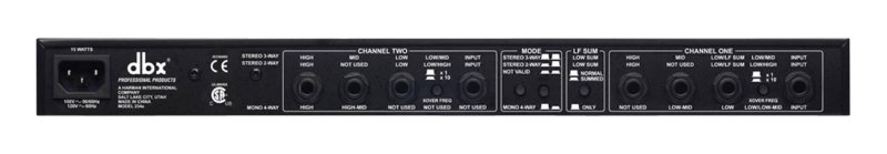The dbx 234s is a dual channel crossover with all the features you would expect from a professional product. It features Linkwitz-Riley 24dB per octave filters, independent output gain controls for level matching, output phase inversion, 40 Hz low cut filter, and optional mono summing of the low frequency (subwoofer) output. Everything in the design exudes great precision from the solid "click" controls to the high quality 1/4" TRS inputs and outputs.