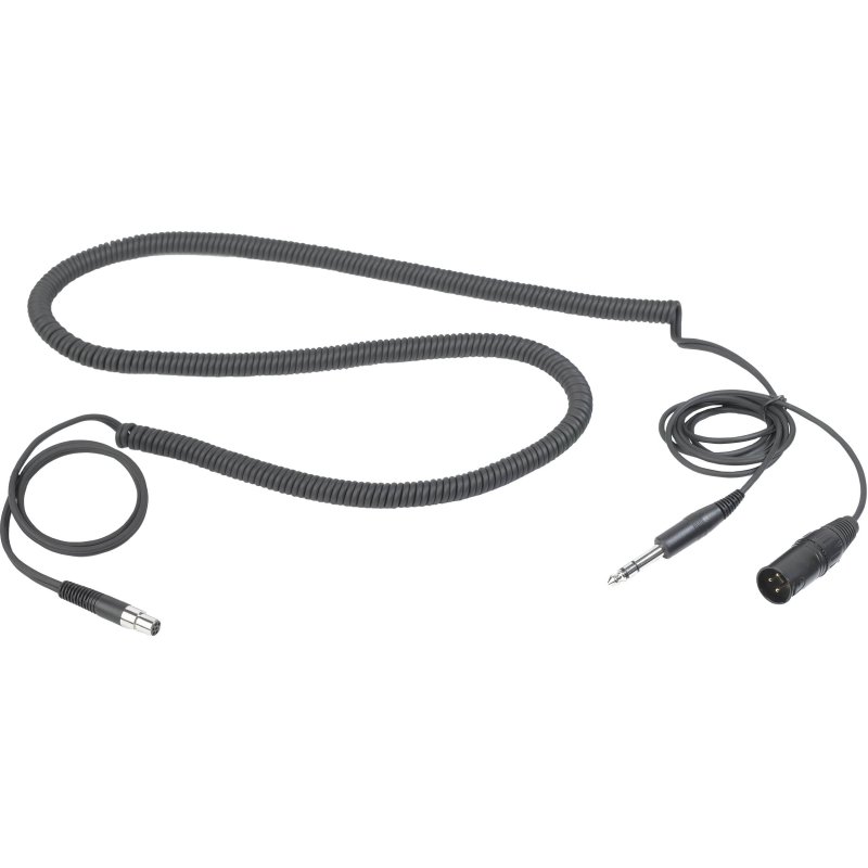 Headset cable for studio, moderators, commentators (three-pin XLR male). Detachable cable with a 6-pin mini XLR connector on one end that connects to AKG HSD Headsets, and a 6.3mm (1/4") stereo jack and three-pin XLR male on the other end. No phantom powering required. Cable length: 1.8 to 2.5 m (5.9 to 8.2 ft.).