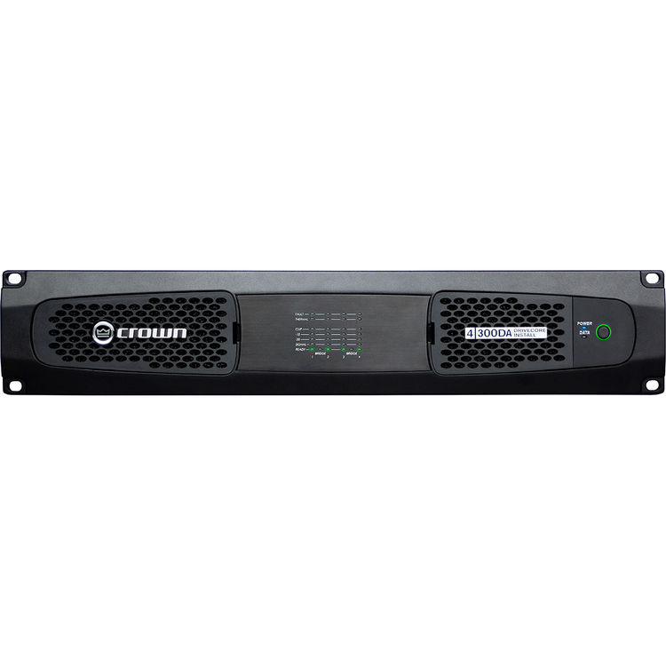 The Crown DCi 4/300DA DriveCore Install DA Series is a 4-channel power amplifier with Dante / AES67 networked audio and integrated DSP. The amplifier is capable of producing 300W of output per channel and works with 2-, 4-, 8-, and 16-Ohm speakers or with 70/100Vrms systems. Channels can be bridged for powering higher power applications such as a subwoofer.