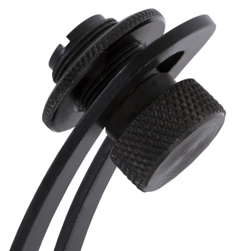 Mic a drum without the need for a mic stand on the floor. Our compact DM50 Drum Rim Mic Clip securely clamps to a drum rim and supports any standard 5/8"-27 mic clip, gooseneck, or other mic accessory. The position of the threaded lug adjusts up and down to enable precise mic placement. An integrated rubber shock absorber isolates the mic from the clamp to reduce vibrations.