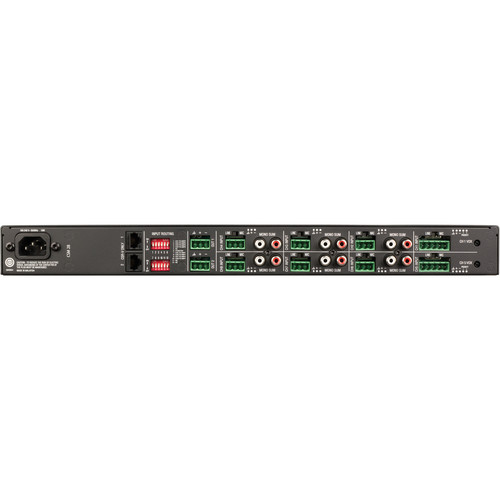 The CSM 28 - Eight Inputs/Two Outputs Commercial Series Mixer by JBL is backed by the combined technological prowess of multiple Harman brands and can be easily configured for a wide range of applications such as providing background music, security, and paging in schools, hospitals, restaurants, and fitness facilities. For I/O, the mixer features Euroblock type mic/line input and output connectors, as well as unbalanced RCA inputs. The chassis features illuminated rings that makes them easier to see and use for the dedicated volume, bass, and treble controls. The rear panel of the mixer features an array of DIP switches for configurable input/output routing. |