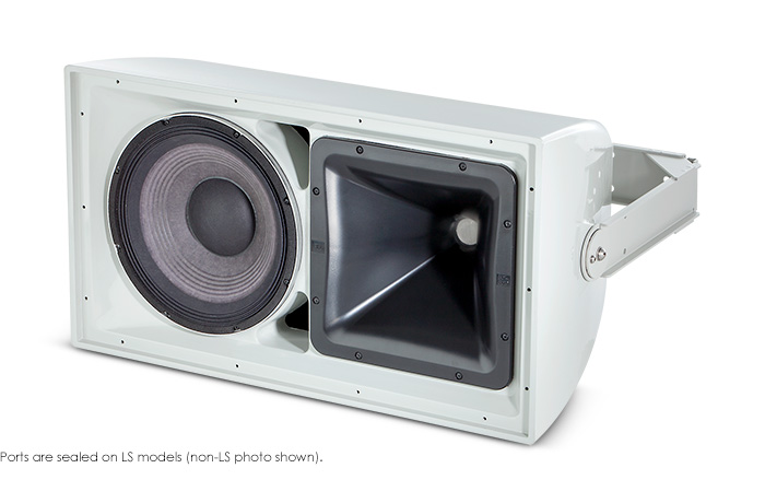 The gray AW295 High Power 2-Way All-Weather Loudspeaker with 12" LF and Rotatable Horn from JBL is designed to serve as a high power, lightweight, 2-way, full-range loudspeaker system. The system is comprised of the JBL Differential Drive dual voice coil and dual magnetic gap 2262H low-frequency driver and a 2432H high frequency 1.5" exit voice-coil compression driver. The large format progressive transition wave-guide provides 90° x 50° coverage and the speaker is equipped with a 400W transformer for 70/100V applications. The enclosure is constructed of multi-layer glass composite and braced to maximize low-frequency performance. The 16-gauge stainless steel grille is backed with open cell foam and stainless steel mesh for protection against the environment. |