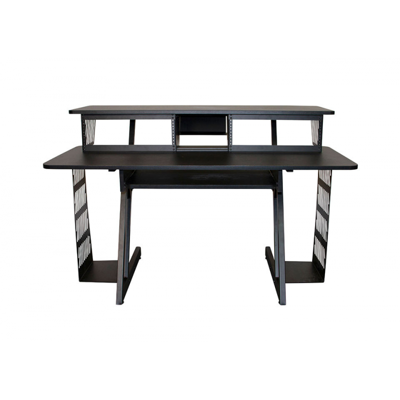 Get more done with our WS7700 Workstation. This sturdy desk has a place for computers, studio monitors, MIDI controllers, rackmount components, and recording and mixing equipment, making it easy to keep gear organized and ready to use. A slide-out keyboard tray and an elevated platform for a monitor and speakers increase work space and enhance operating comfort. In addition to a spacious desktop that supports a wide range of mixers and keyboard instruments, two 3U shallow racks provide a space for rackmount components totaling 6U. To top off this efficient and orderly setup, a mobile device slot-stand and two computer holders keep delicate electronics safe and conveniently within reach. |