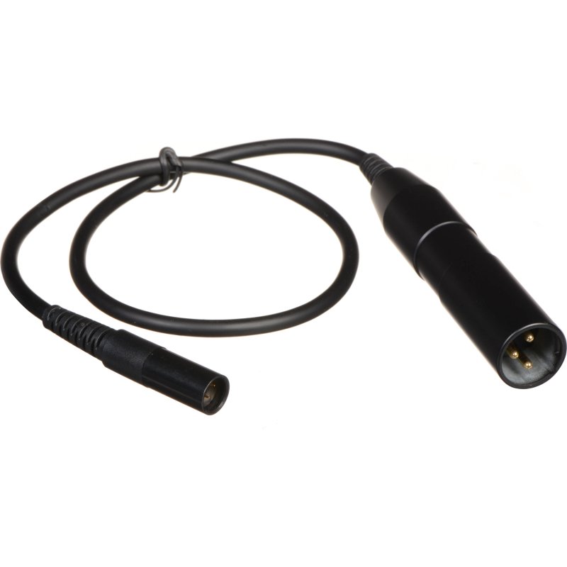 Phantom power adapter with XLR connector for L type MicroMic microphones with integrated bass roll-off switch.