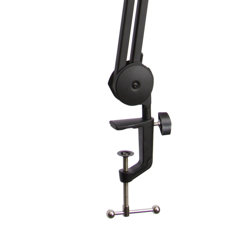Our MBS7500 Professional Studio Mic Boom Arm delivers quiet operation and extensive adjustability for professional broadcast, webcast, and studio applications. The mounting stem is compatible with standard mic clips and shock mounts. Internally-located springs and tension cables contribute to a silent, strong, sleek design. Reinforced hinges provide broad articulation while the base shaft and mounting stem each swivel, enabling a huge variety of positions. The compact base of this versatile boom arm can be temporarily clamped or permanently mounted to desktops, resulting in a small, space-saving footprint. |