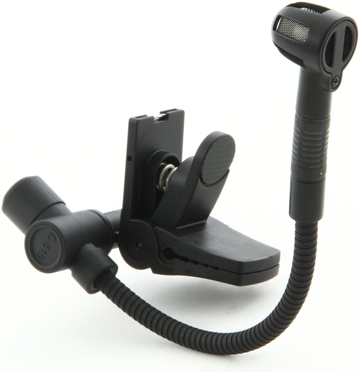 The AKG C519 M clips onto the bell of a trumpet, saxophone, trombone, tuba, or any other wind instrument (e.g. didgeridoo). Room to move for the wind section at last! Its tight cardioid polar pattern makes the C 519 an ideal tool for use near monitor wedges, and its flat frequency response delivers a natural, powerful, and clear sound. |