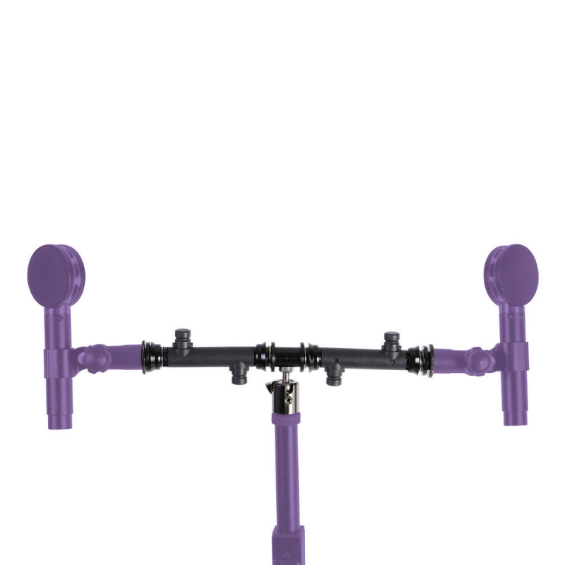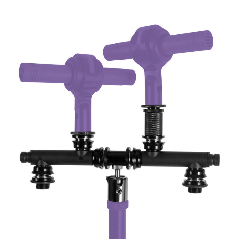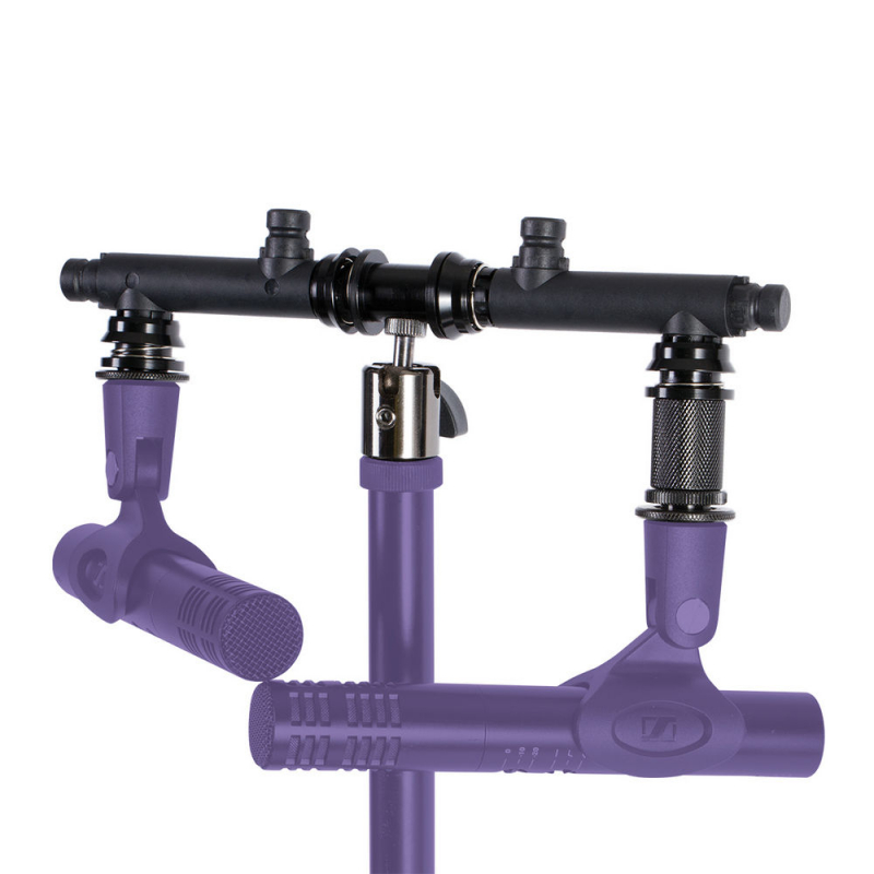 Achieve countless multiple-mic arrangements with our MY800 Quick-Release Stereo Mic Bar. This versatile bar features removable arms that can be configured horizontally or vertically, and a mic stand clutch that mounts horizontally, vertically, or at any angle in between. It includes four quick-release connectors to hold up to four mic clips, while two additional connectors can be purchased separately to hold up to six mic clips simultaneously. An included extension riser enables positioning of one mic over another. |
