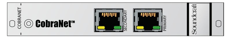 The ViO-COB (part no. RS2485SP) from Soundcraft is a 32-channel CobraNet™ input/output card designed for Soundcraft's Vi Series™ mixing consoles. The card allows up to 32 channels of input or outputs signals (or a combination of both) to be received by or