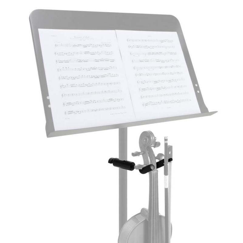 Any tripod-base music stand and mic stand can double as a violin hanger with our VS7200 Violin Hanger for Music Stands. This yoke is sized specifically for violins and clamps easily to round tubing. Padding on all the instrument contact points including the lower bumper delivers a nonslip grip and protection of the instrument's finish. An integrated extension on the yoke provides a convenient place to hang a bow.