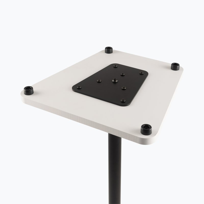 This pair of SMS7500 Wood Studio Monitor Stands reliably supports heavy monitor speakers weighing up to 90 pounds each, holding them at the desired level and angle for mixing, mastering, and playback.