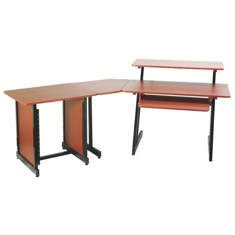Our WS7500RB Workstation provides a sturdy, professional-looking foundation for a home studio's computer, MIDI controller, and mixing gear. With an elevated monitor platform, a spacious desktop, and a slide-out keyboard tray, its ergonomic configuration maximizes work space and operating comfort. As a studio grows, this setup can expand with the addition of our matching WSC7500RB Workstation Corner Accessory and WSR7500RB Rack Cabinet. |