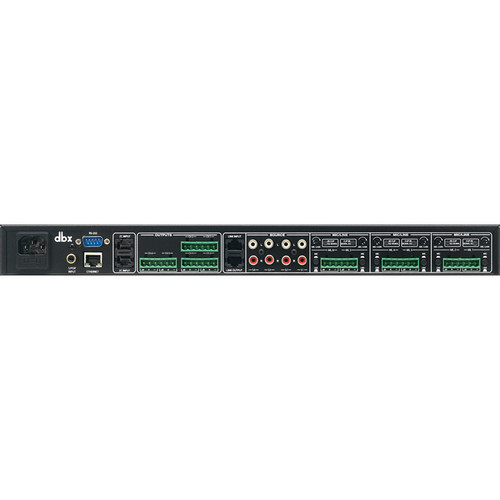 The dbx ZonePRO 1260m 12x6 Digital Zone Processor can distribute up to twelve audio sources across six mono output zones. The included software will allow you to adapt the input/outputs quickly to fit your needs. The ZonePRO 1260m features an interactive front panel with an LCD display, comprehensive signal metering, user-specified controls, and paging broadcast buttons. With versatile routing and plentiful connectivity, the 1260m will suit a banquet hall or house of worship.